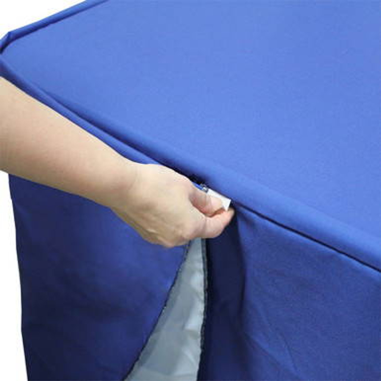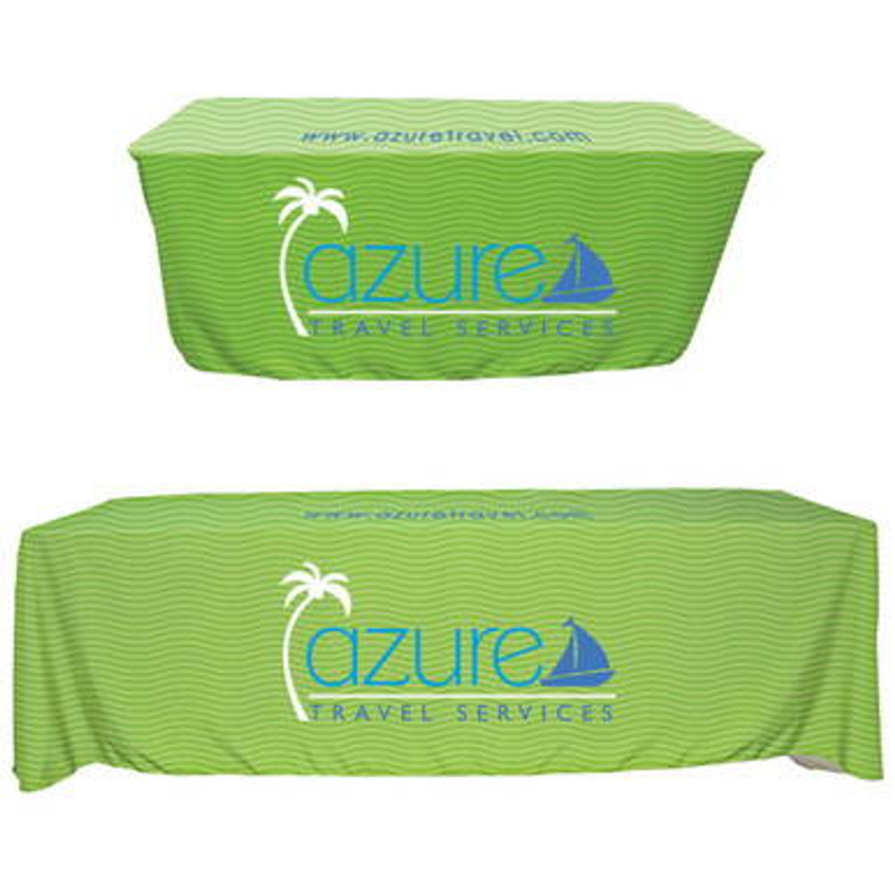 Celina's printing abilities allows us to offer full dye-sublimation printing for all of your table cover needs. With full dye-sublimation, prints are machine washable and color-fade resistant (for up to two years); when combined with the 6' - 8' Convertible Table Cover, the savings can't be beat! Each cover works as a draped cover for any 8' banquet table, with the option of drawing in the excess material and creating a 6' fitted table cover in seconds. Each of the front corners attaches to the back of the cover using hook and loop fasteners. With full dye-sublimation printing, you can choose any background you wish, with the option of your log being displayed on any side or surface.