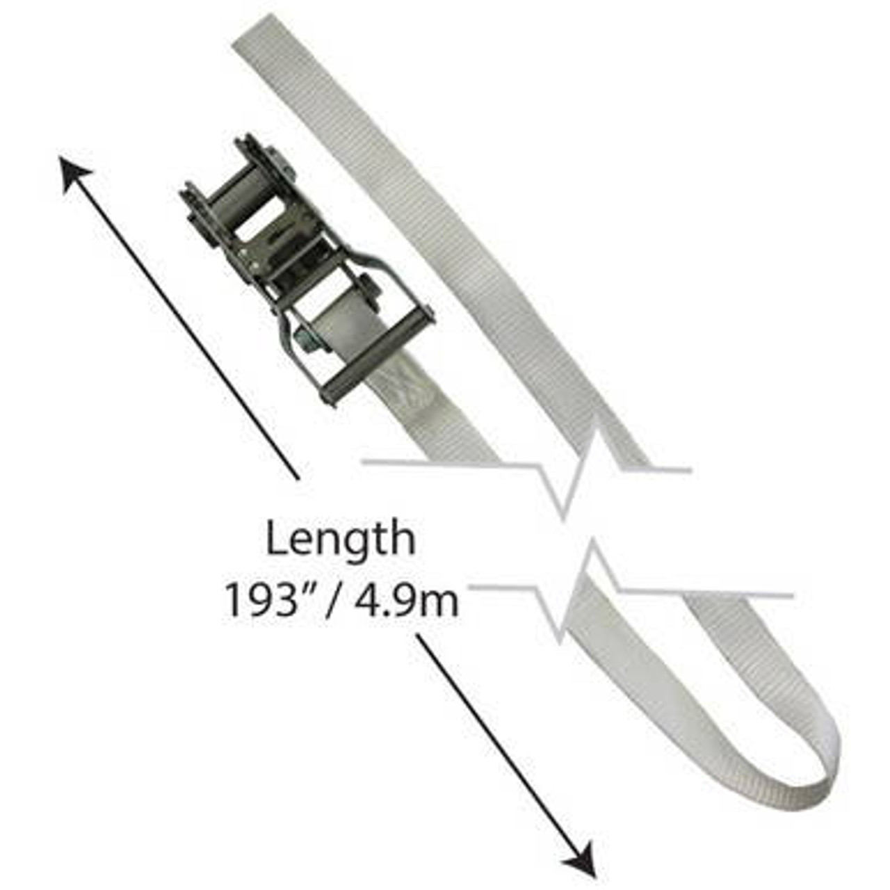 This strap manufactured using 1'' webbing, with a 1" ratchet buckle at one end. Ratchet assemblies provides a safe, easy, and secure method to anchor tents.