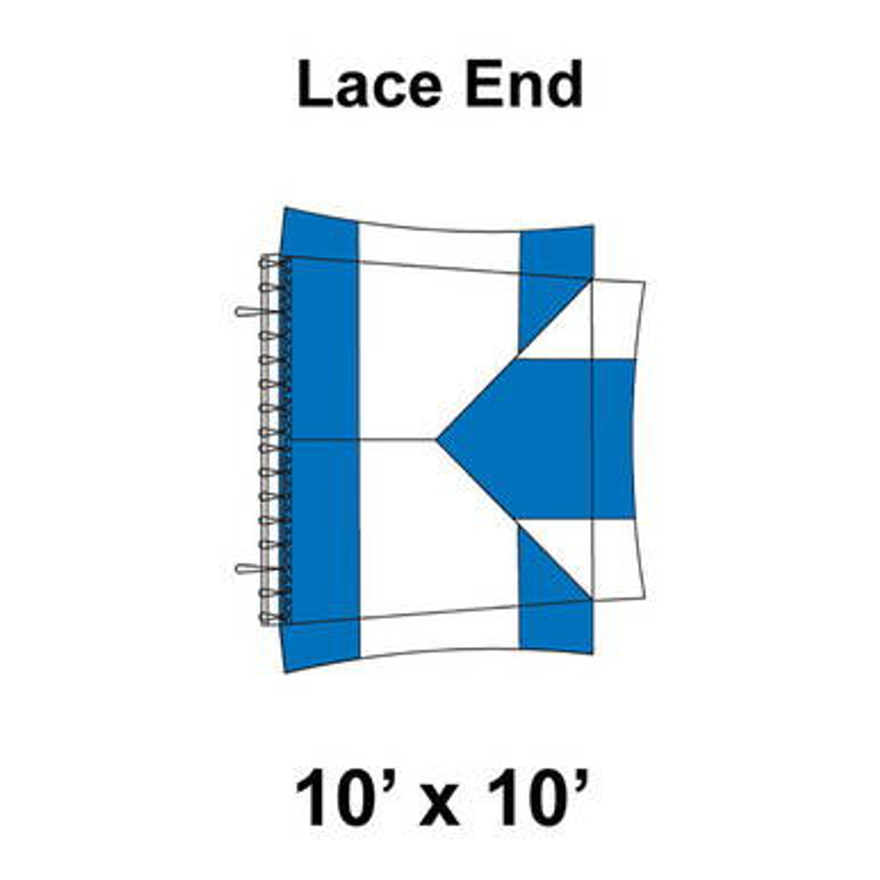 10' x 10' Master Series Frame Tent Lace End, 16 oz. Ratchet Top, White and Blue