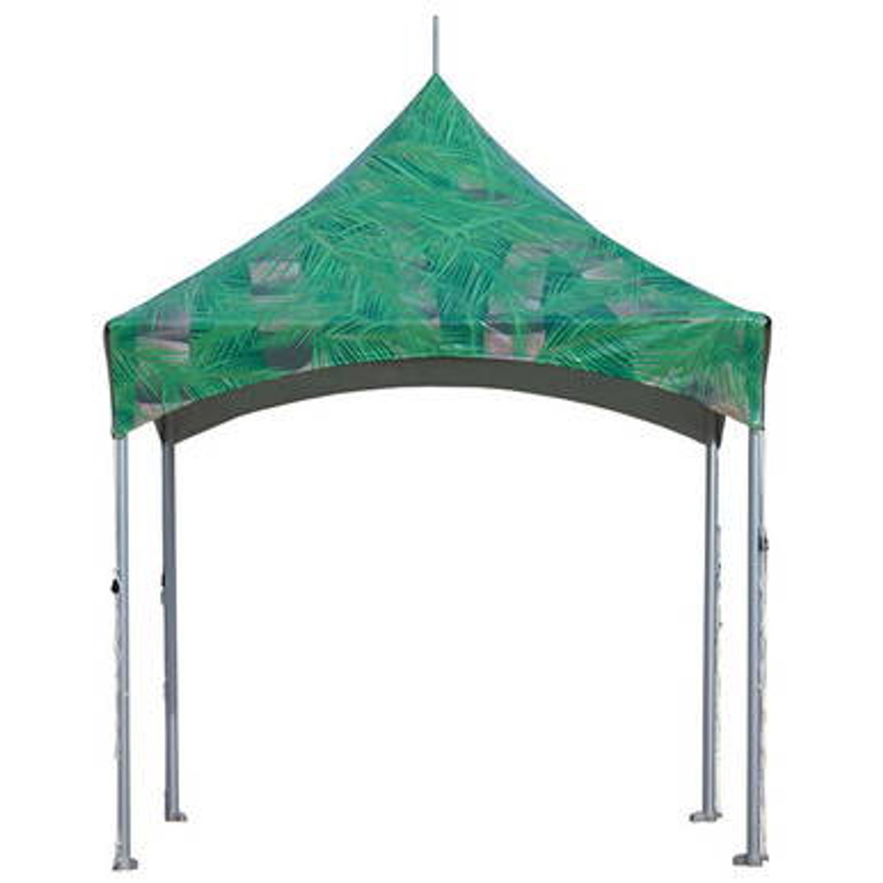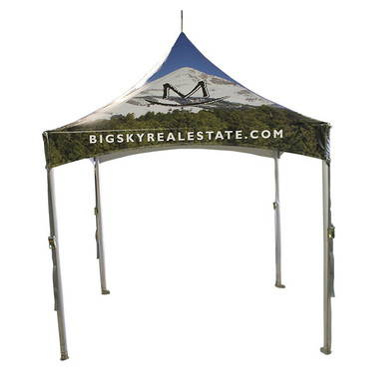 Pinnacle High Peak Frame Tents allow custom artwork, corporate logos, team names or marketing messages printed directly on tent material which is then manufactured into customer's finished branded tent. The Pinnacle series of custom promotional tents are used at trade shows, outdoor festivals and other marketing events. For more information can be found on the custom printing tab.