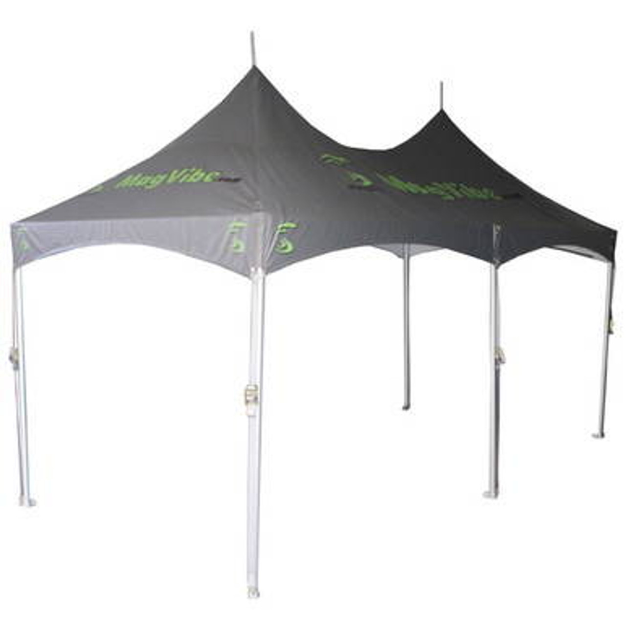 Pinnacle High Peak Frame Tents allow custom artwork, corporate logos, team names or marketing messages printed directly on tent material which is then manufactured into customers finished branded tent. The Pinnacle series of custom promotional tents are used at trade shows, outdoor festivals and other marketing events. For more information can be found on the custom printing tab.