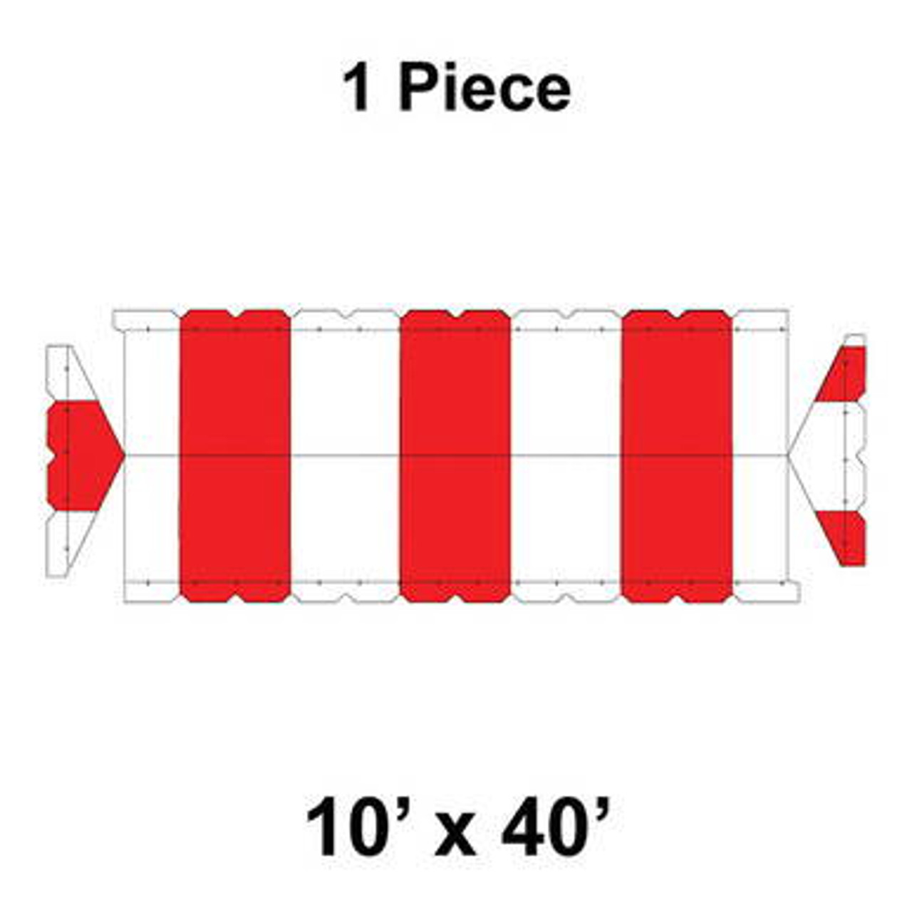 10' x 40' Gable Frame Tent, 1 Piece, 16 oz. Ratchet Top, White and Red