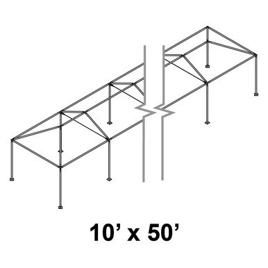 The "Classic Series" design is valued for its traditional aesthetic and industrial-strength durability. The 10' x 50' configuration is particularly effective for sidewalk festivals, VIP entryways, and multi-station tent installations where space is restricted in width but abundant in length. The modular frame system is engineered for maximum maintenance efficiency and rapid deployment, allowing crews to assemble the structure with standard tools and manage individual components with ease during high-volume seasonal cycles.