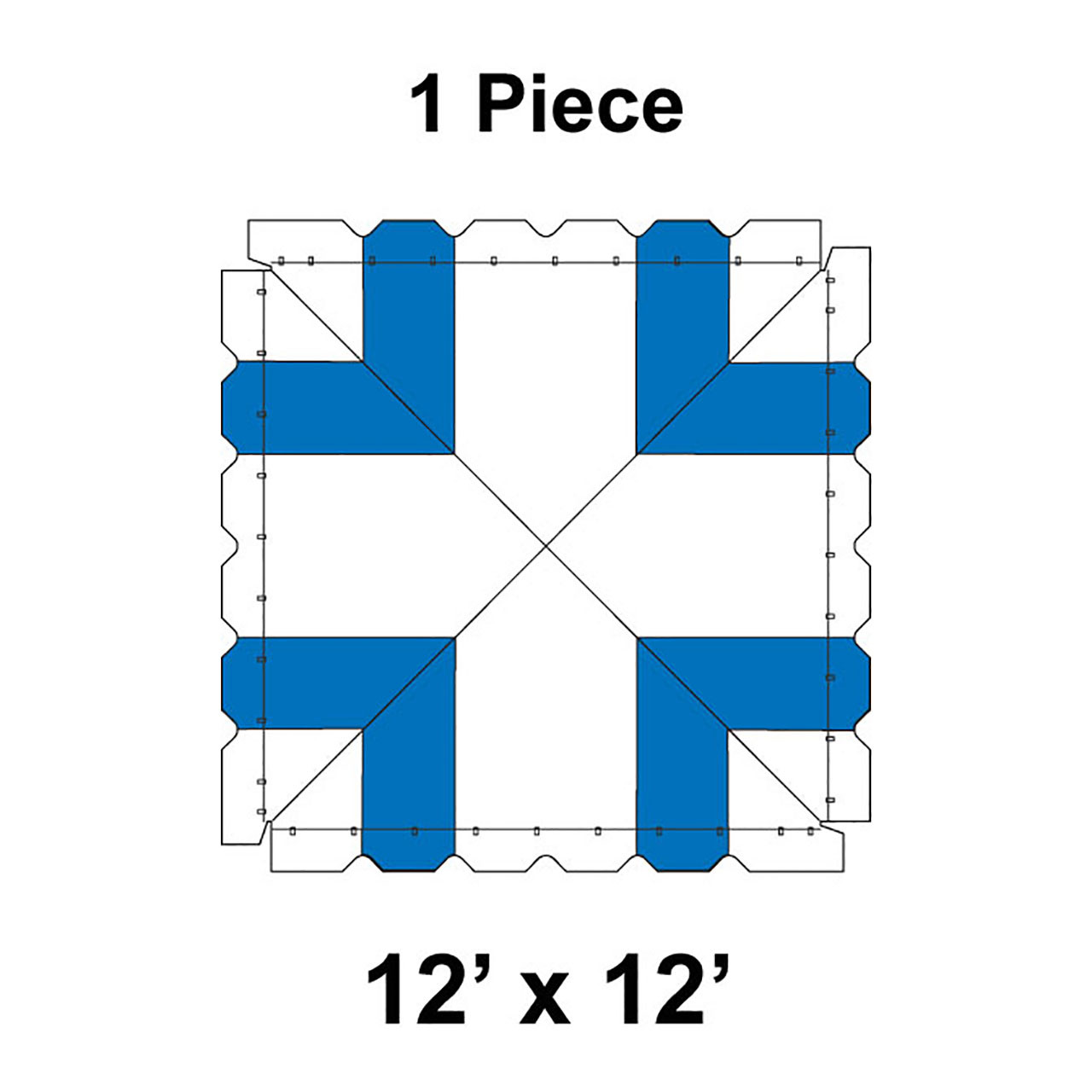 12' x 12' Classic Frame Tent, 1 Piece, 16 oz. Ratchet Top, White and Blue