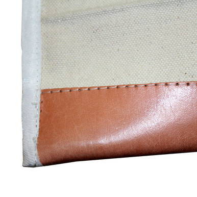 The bag is constructed from heavy-duty canvas, providing flexibility while maintaining strength under load. The nylon binding reinforces high-stress edges, while the genuine leather bottom adds extra protection where abrasion is most likely to occur.