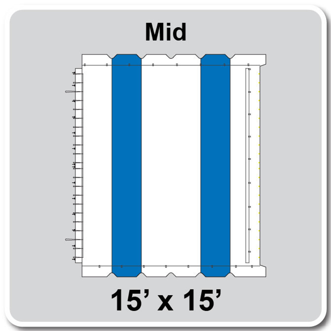 15' x 15' Classic Frame Tent Mid, 16 oz. Ratchet Top, White and Blue