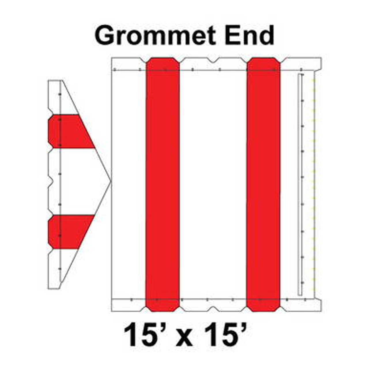 15' x 15' Gable Frame Tent Grommet End, 16 oz. Ratchet Top, White and Red