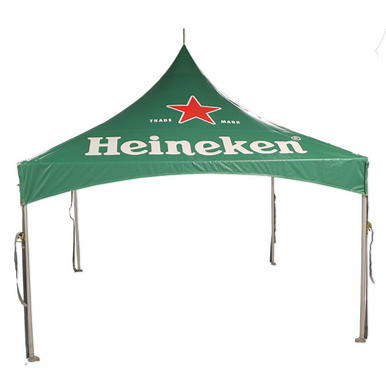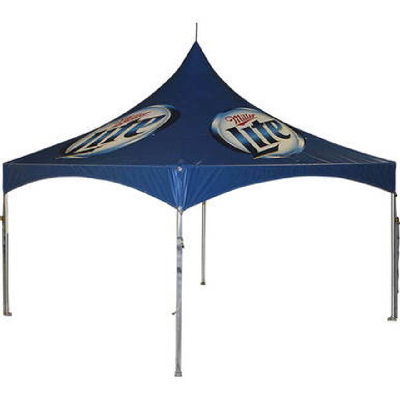 Pinnacle High Peak Frame Tents allow custom artwork, corporate logos, team names or marketing messages printed directly on tent material which is then manufactured into customer’s finished branded tent. The Pinnacle series of custom promotional tents are used at trade shows, outdoor festivals and other marketing events. For more information can be found on the custom printing tab.