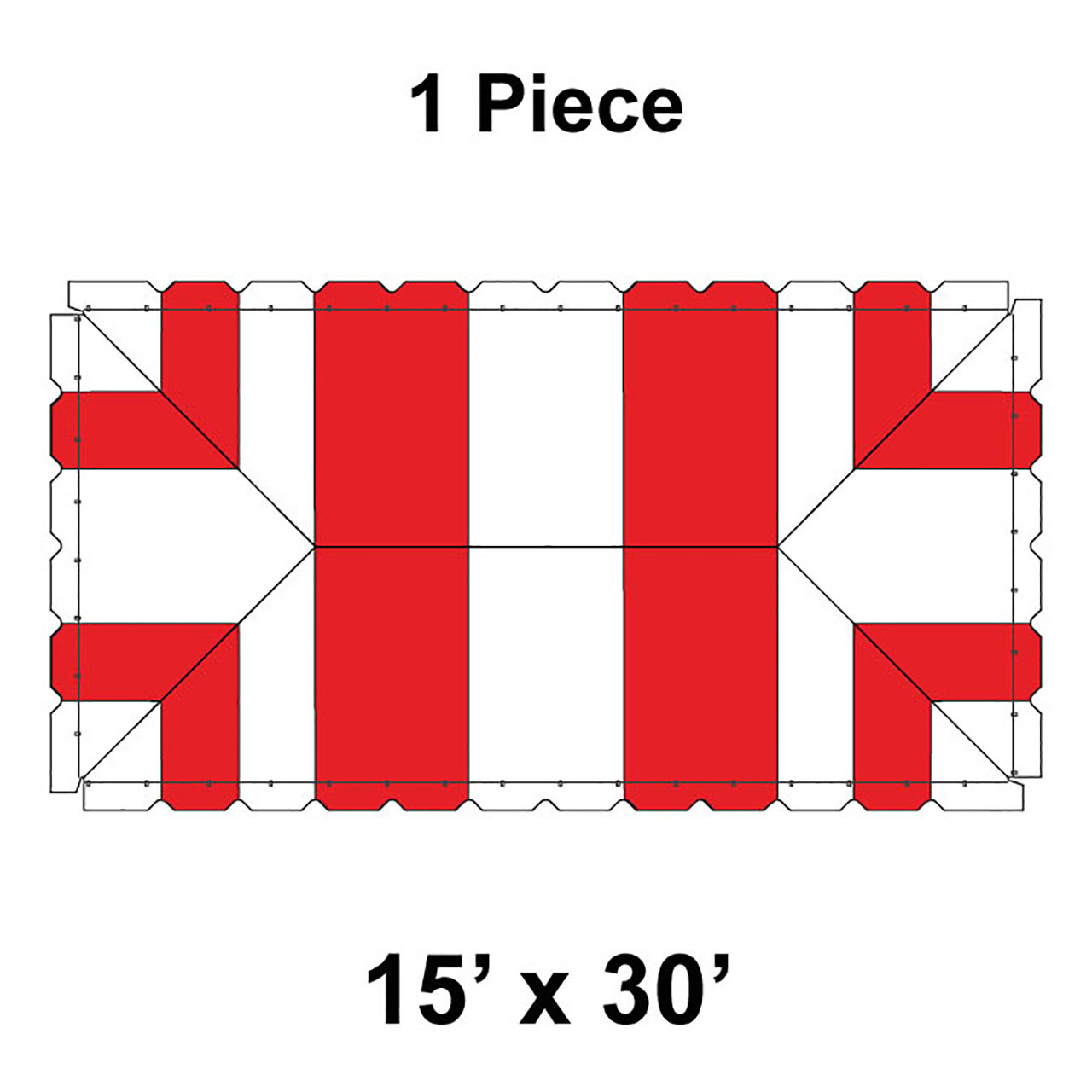 15' x 30' Classic Frame Tent, 1 Piece, 16 oz. Ratchet Top, White and Red