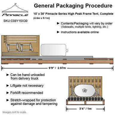 • 15' x 30' Pinnacle Series White Cross Cable Tent, complete with detailed diagram and packaging information.