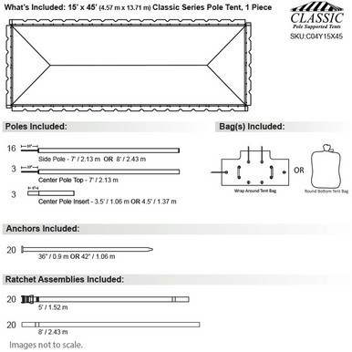 15 x 45 Classic Series Pole Tent — 1-Piece Tent Top, Complete Kit Engineered for Reliability. Built for Larger Gatherings.The 15 x 45 Pole Tent in CELINA’s Classic Series delivers professional-grade performance and a refined, traditional look f…