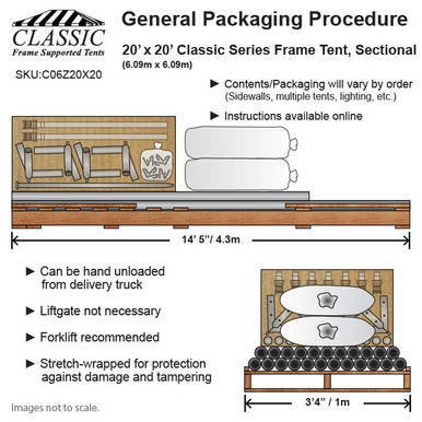 The 20 x 20 Classic Series Frame Tent provides approximately 400 ft² of covered space. Estimated capacities include: