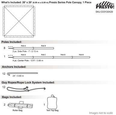 Get a dependable, easy-to-use canopy that looks great and works hard. The 20 x 20 Presto Series Pole Canopy is ready for your next event.