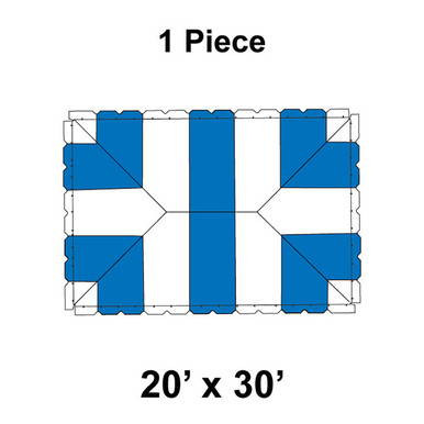 20' x 30' Classic Pole Tent, 1 Piece, 16 oz. Ratchet Top, White and Blue