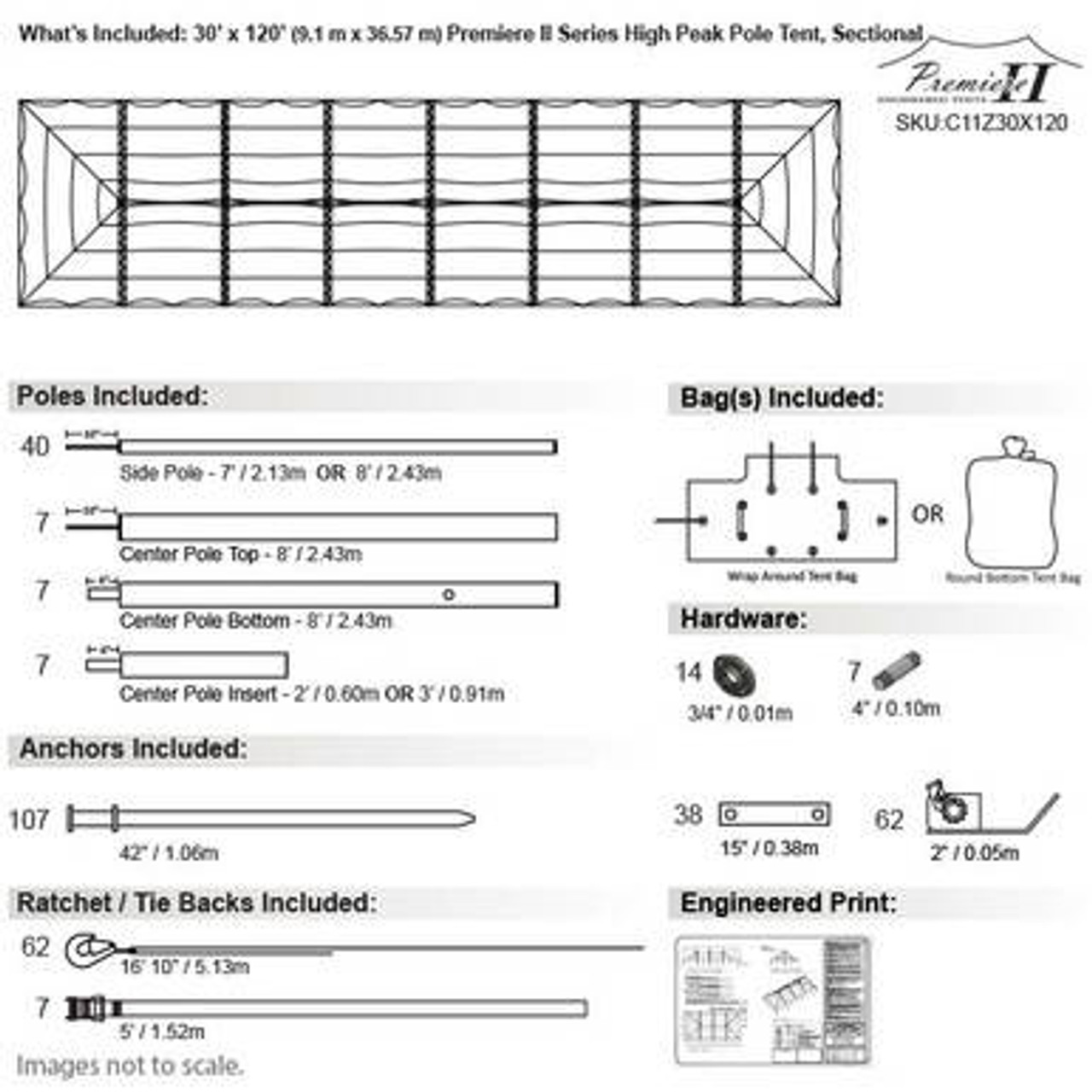 30' x 120' Premiere II High Peak Pole Tent Component Checklist...