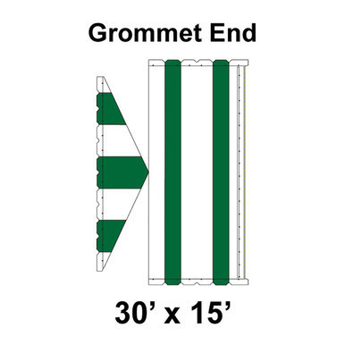 The 30' x 15' Classic Gable Frame Tent Top (Grommet End) is a modular fabric component engineered for rental companies and event professionals who require a large-scale, versatile shelter. This 450-square-foot section features a "Grommet End" design, allowing it to be securely connected to other tent sections using a grommet-and-lace system. Constructed from industrial-grade 16 oz. blockout vinyl, this top offers 100% shade and a completely waterproof barrier, making it an ideal choice for high-end event setups such as large wedding receptions, corporate gatherings, and community festivals. The gable configuration, characterized by its vertical end panels, provides a professional house-shaped roofline that is perfect for displaying custom branding or for mounting flush against buildings.