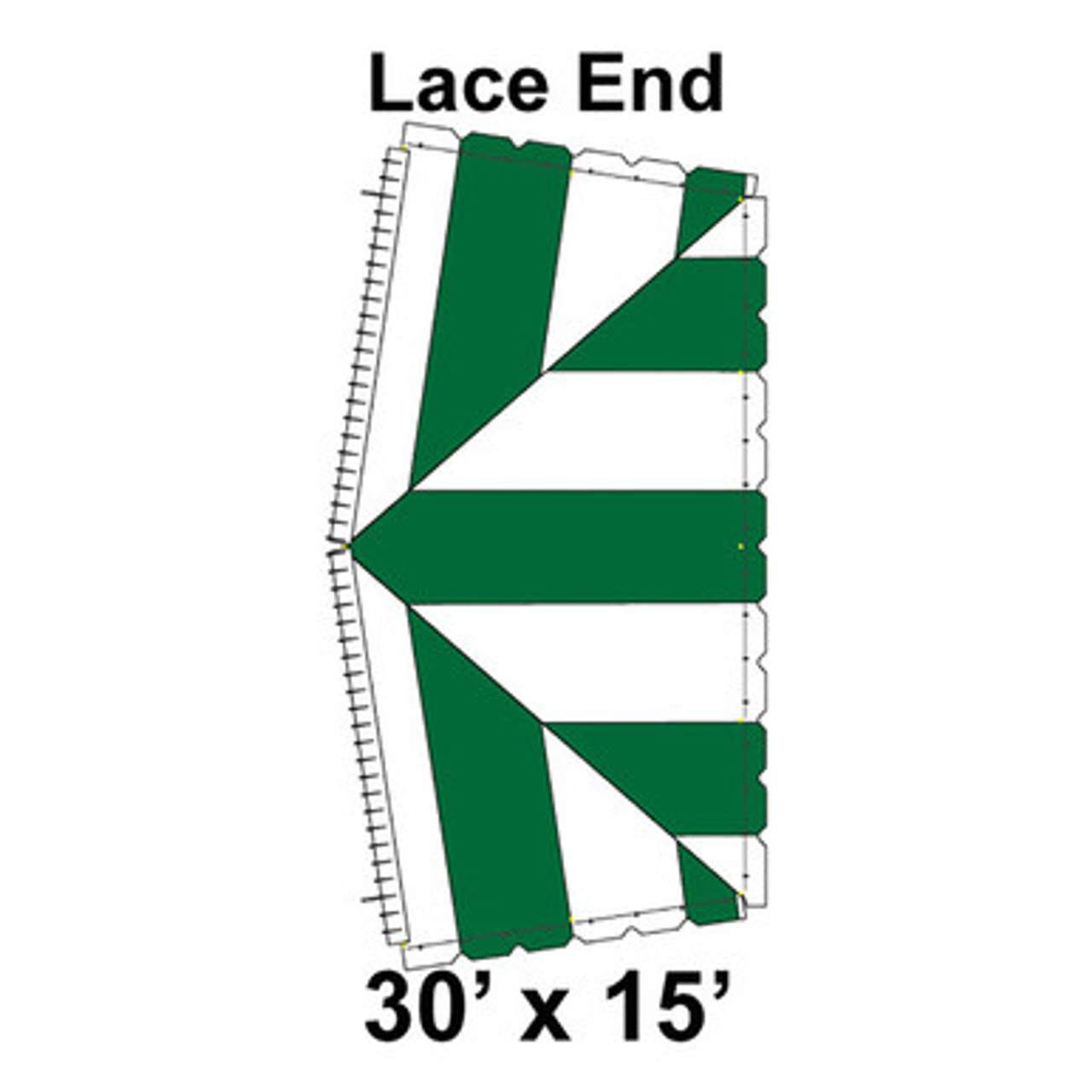 30' x 15' Classic Pole Tent Lace End, 16 oz. Ratchet Top, White and Forest Green