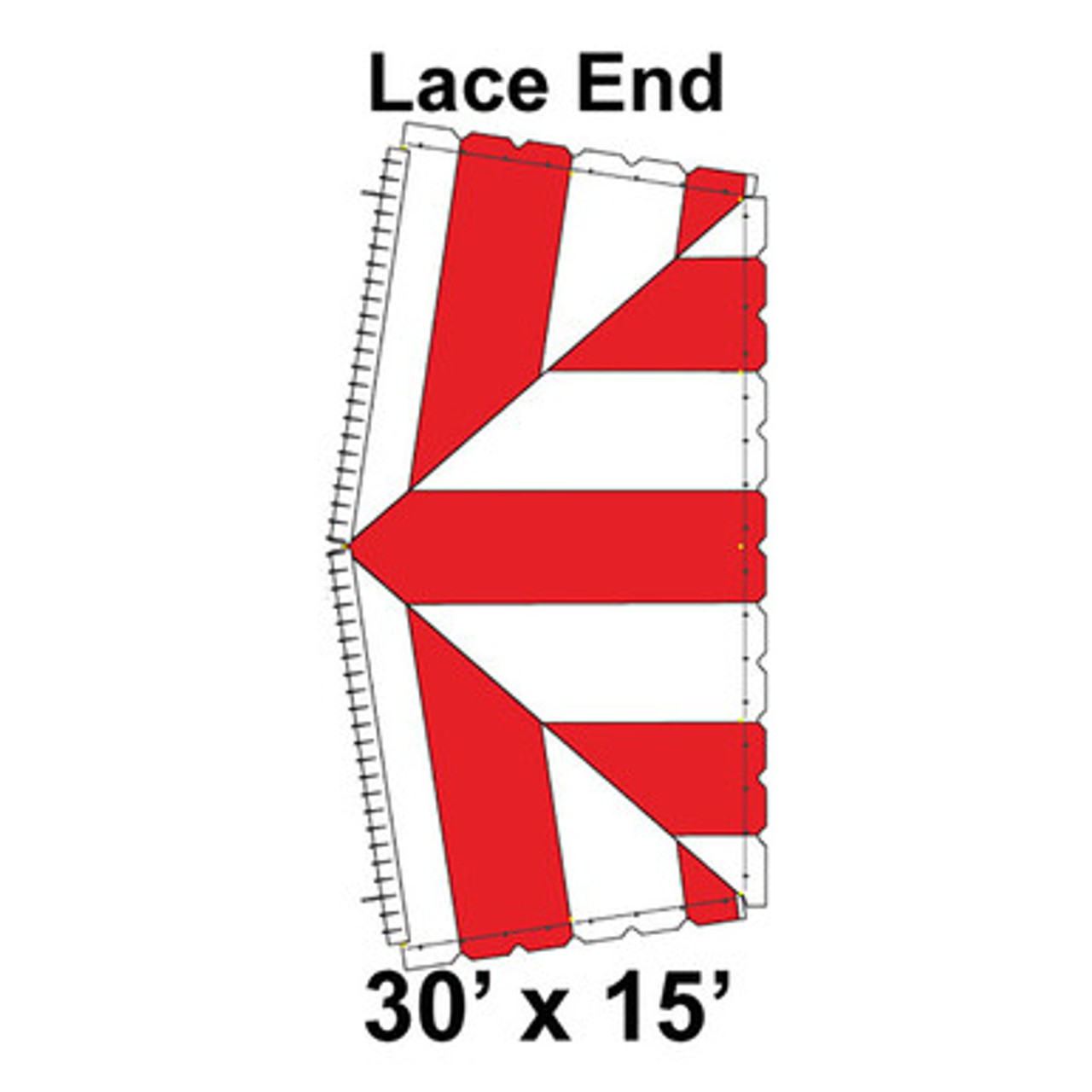 30' x 15' Classic Pole Tent Lace End, 16 oz. Ratchet Top, White and Red