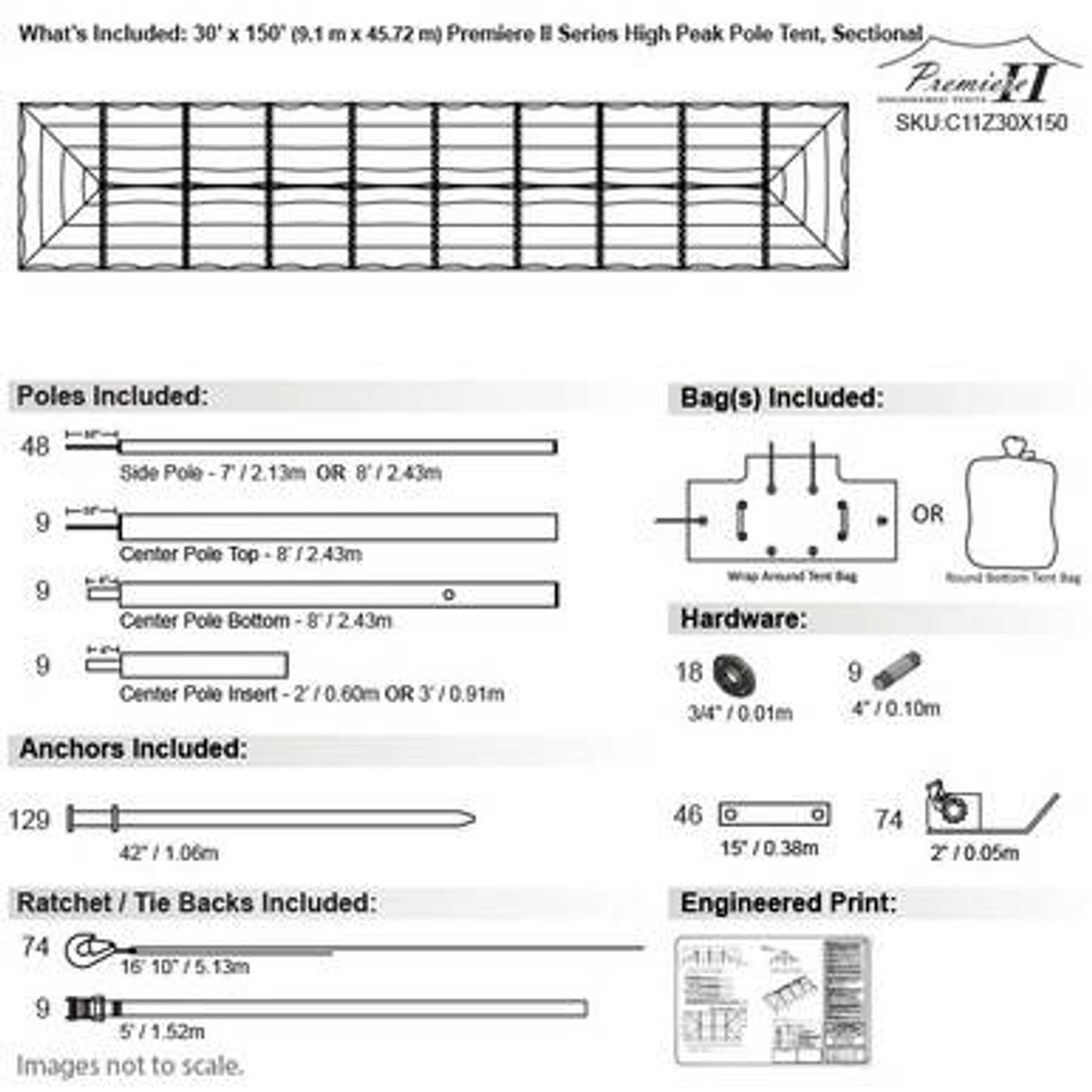 30' x 150' Premiere II High Peak Pole Tent Component Checklist...