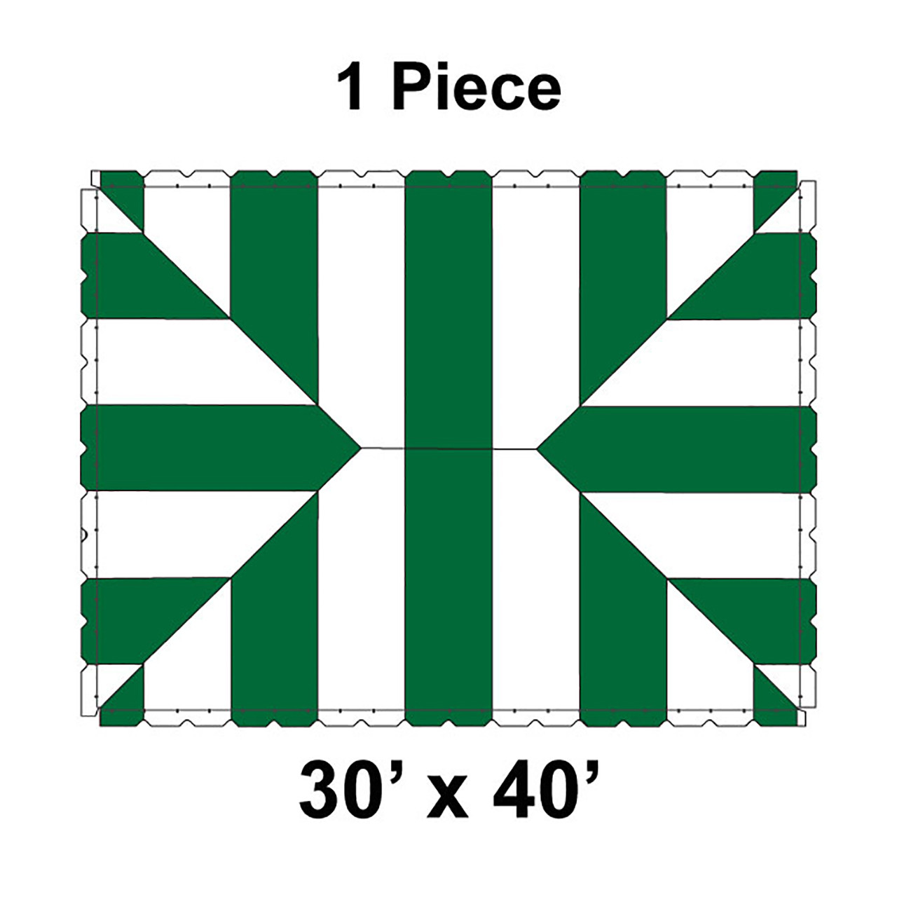 30' x 40' Classic Pole Tent, 1 Piece, 16 oz. Ratchet Top, White and Forest Green