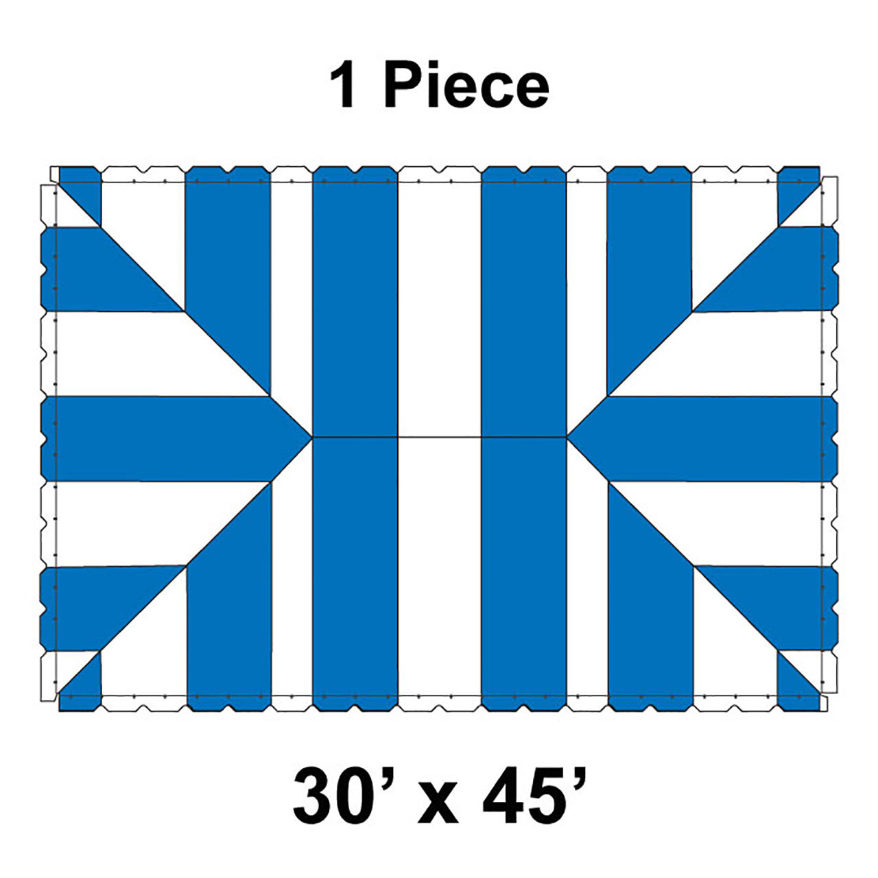 30' x 45' Classic Series Frame Tent, 1 Piece, 16 oz. Ratchet Top, White and Blue