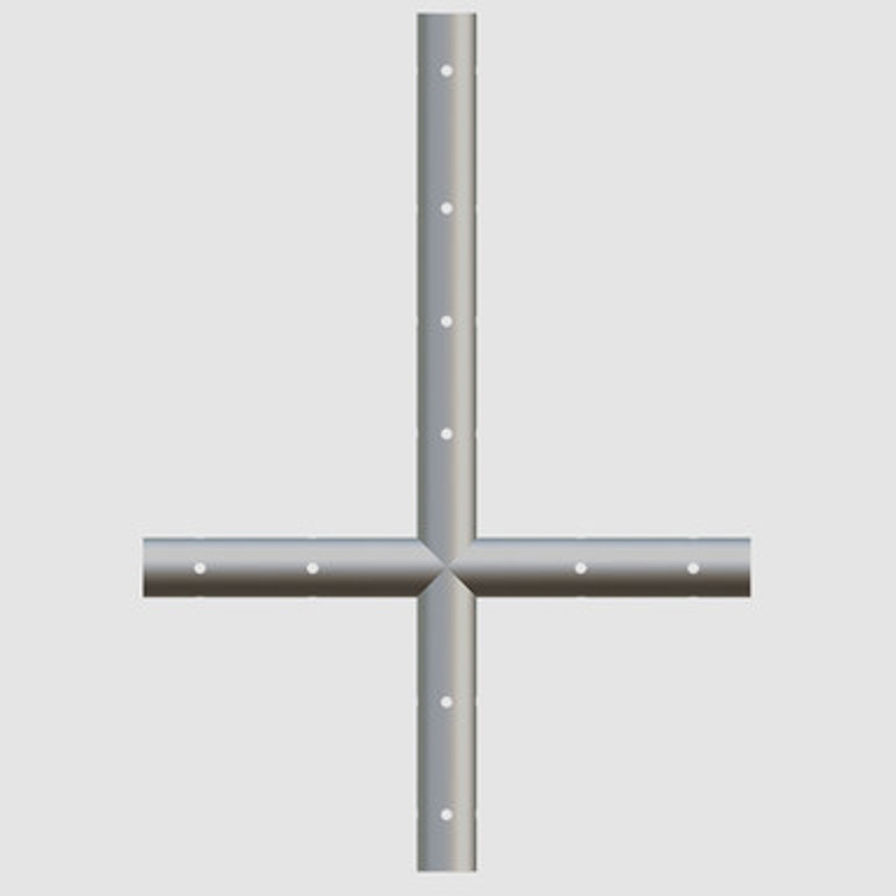 Used in larger Classic Series Gable Frame Tents and for independent projects, the 4 Way Flat Tee is made from zinc plated, 1.25" schedule 40 steel pipe for strength and corrosion resistance. For use with displays and hangers, the 4 Way Flat Tee connects both perimeter and central support tubing to make the installation as strong as possible. On larger Classic Series Gable Frame Tents, the 4 Way Flat Tee is installed directly beneath the crown fitting to provide direct support to the peak.