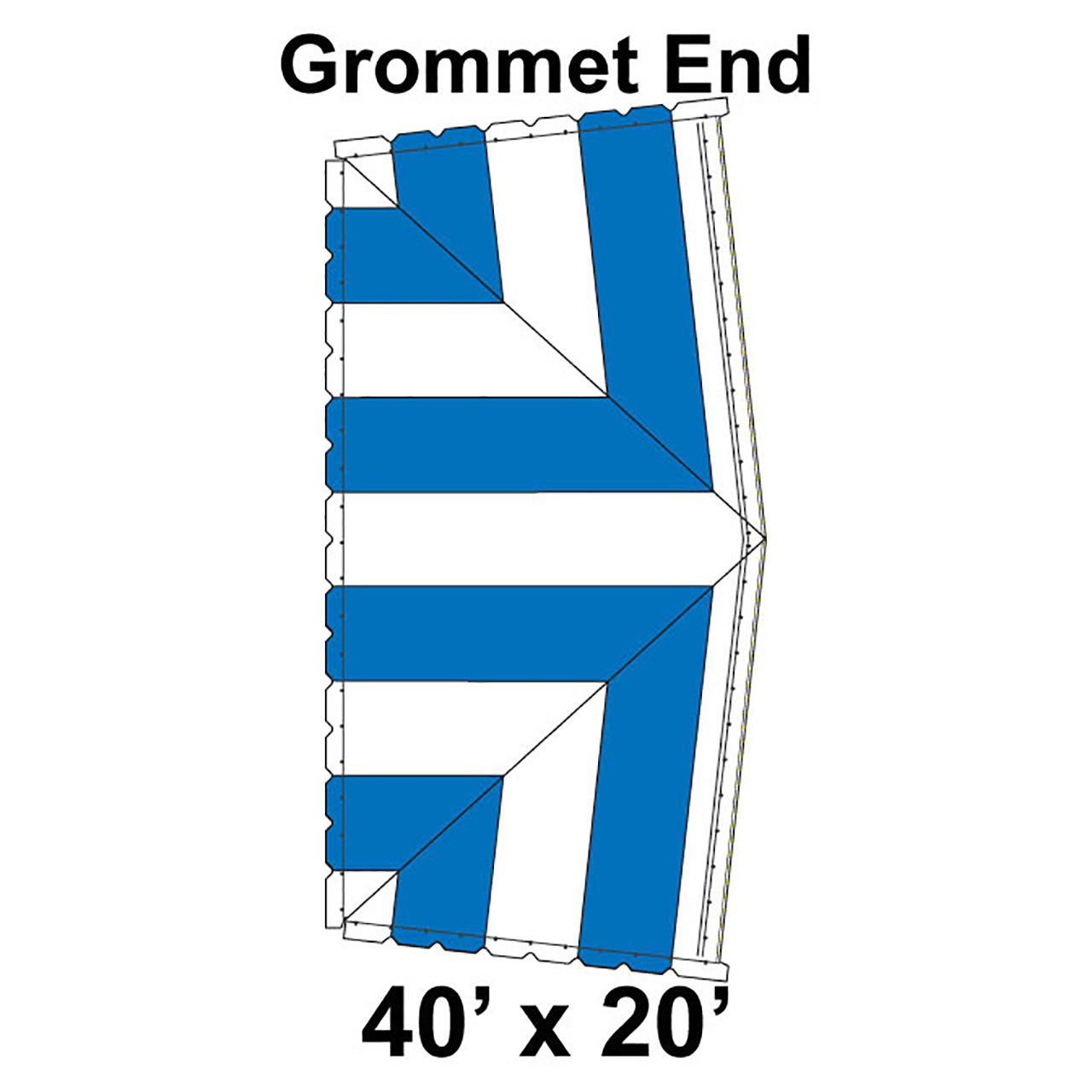 40' x 20' Classic Series Frame Tent Grommet End, 16 oz. Ratchet Top, White and Dark Blue