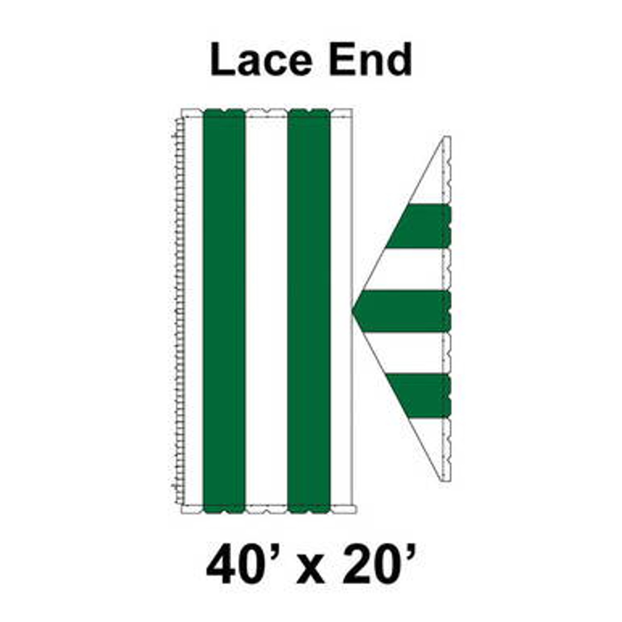 40' x 20' Gable Frame Tent Lace End, 16 oz. Ratchet Top, White and Forest Green