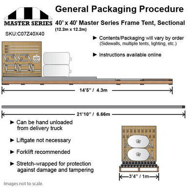 Experience large-format coverage, modular convenience, and long-lasting performance with the 40 x 40 Master Series Frame Tent — Sectional Tent Top Complete Kit, designed for professional event operators and high-capacity venues.