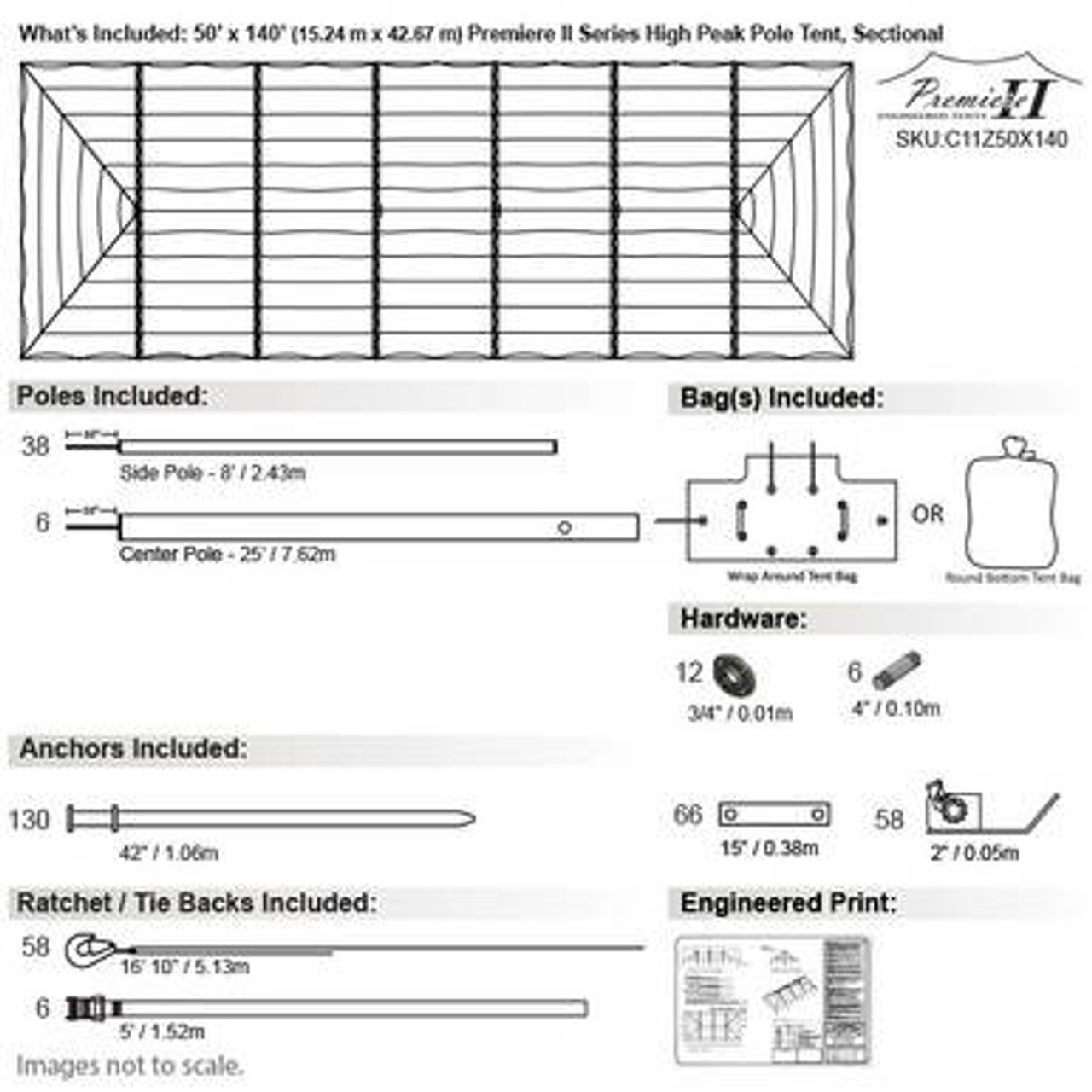 50' x 140' Premiere II High Peak Pole Tent Component Checklist...