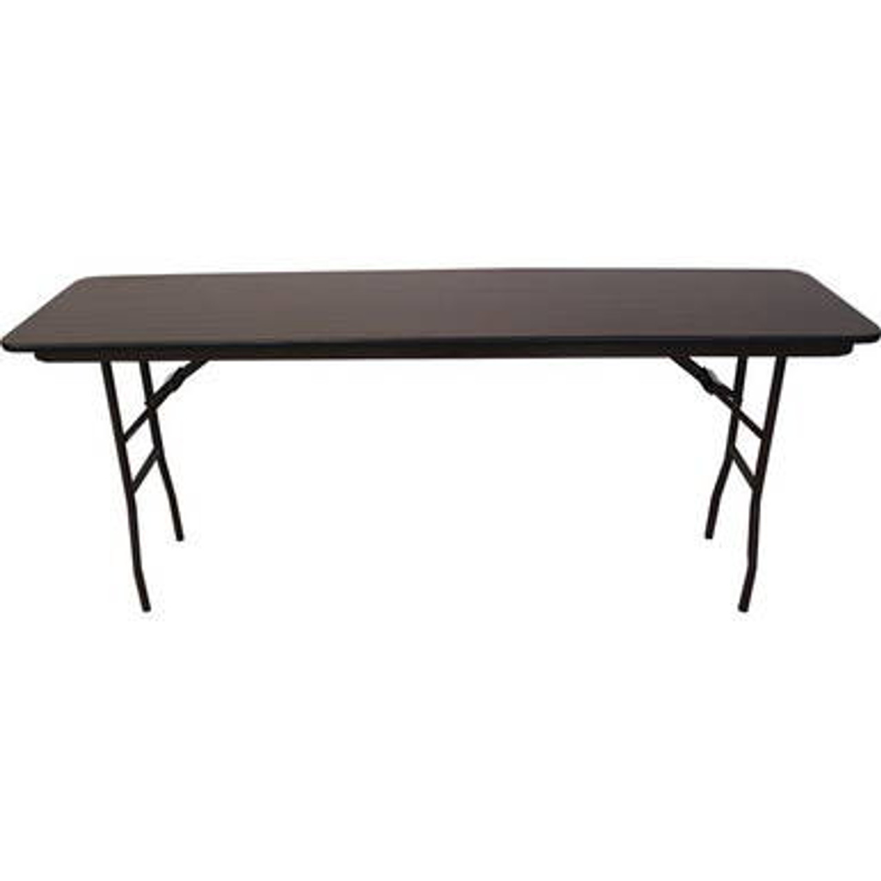 Training Tables such as the 6' (1.83 m) Laminate Training Table are great for creating display tables where space is an issue. As just over half the width of a standard banquet table, each Training Table has the same advantages as all of CELINA's Laminate Tables. The particle board table top is coated on both sides with melamine resin for scratch-resistant, with a vinyl bumper along the edged for added protection. The metal skirting along the underside of the table keeps the top from bending or warping. Steel legs folding down from the underside of the table, with gravity locks to eliminate the chance of leg buckling while set up. Tables are sold in sets of 6, with the listed price being for a single table.
