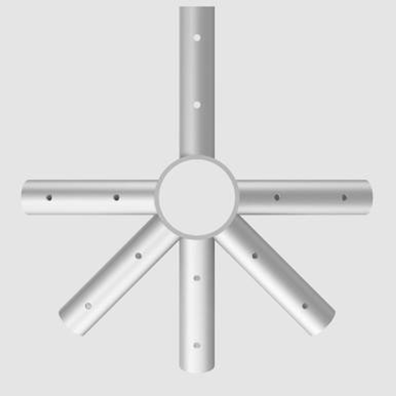 6 Way Crown fittings are used in 20', 30', and 40' wide rectangle-shaped West Coast Style Frame Tents. Used in pairs, the 6 Way Crown has protrusions that extend toward the corners and side tees directly in line with the crown. The last protrusion points toward the other 6 Way Crown. Each West Coast Style Frame Tent Fitting is manufactured from 1.25" schedule 40 steel pipe and finished with zinc plating.