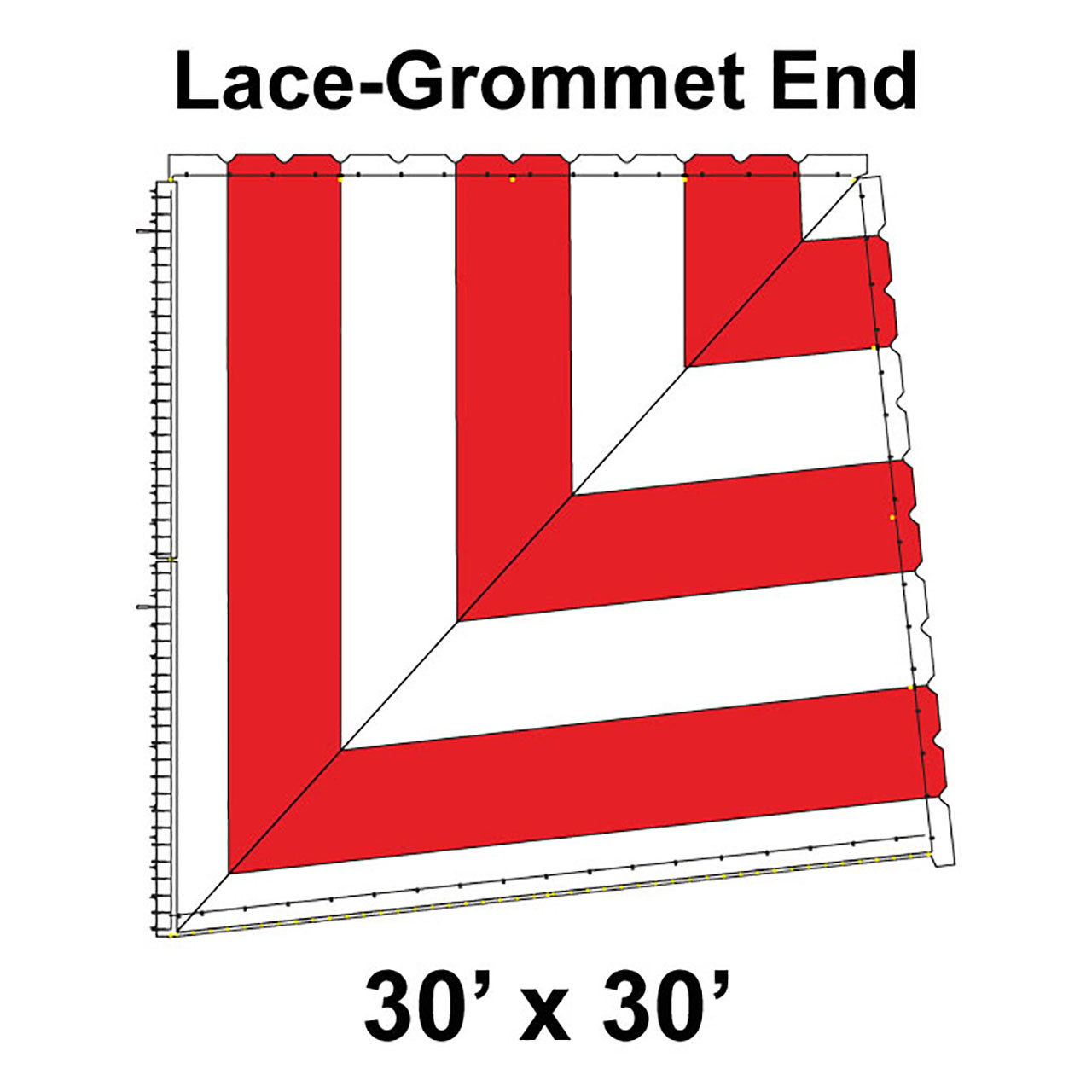 60' Classic Pole Tent End Section 2 of 4, 16 oz. Ratchet Top, White and Red (30'x30'-Lace Grommet)