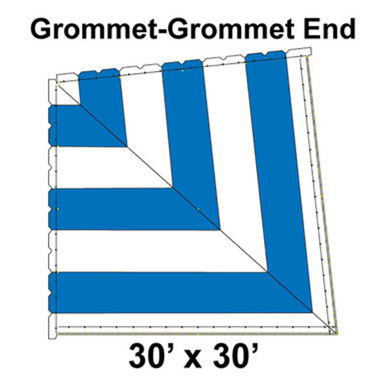 60' Classic Pole Tent End Section 3 of 4, 16 oz. Ratchet Top, White and Blue (30'x30'-Grommet Grommet)