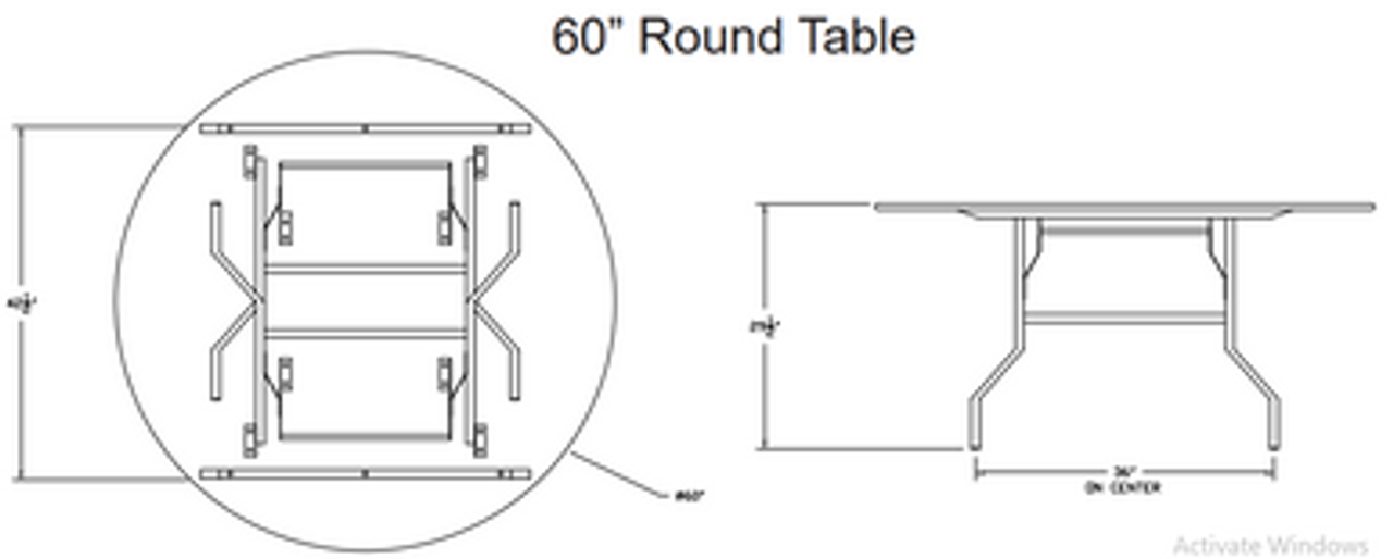 Made with ultra-durable construction and an attractive wood top, 60" (1.52 m) Round Wooden Tables are with you for the long haul. Sturdy construction allows these tables to endure heavy use in such venues as churches, banquet halls, and community centers. 60" tables can comfortably seat 6 to 8 people at once. The legs are created from powder coated, 18 gauge steel for enhanced durability, connect to the table top with through-bolt construction. The plywood top is treat with two layers of UV-cured lacquer to be able to withstand the harshest rental season.