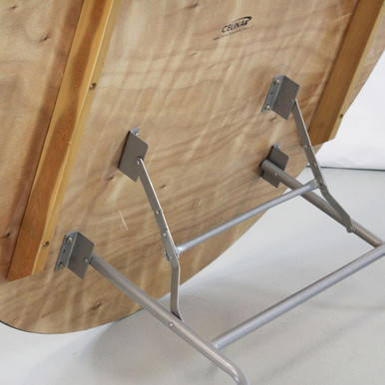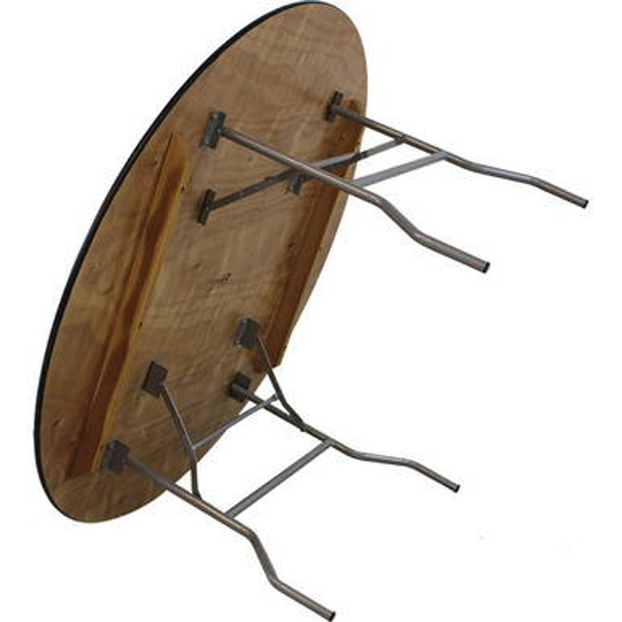 Made with ultra-durable construction and an attractive wood top, 60" (1.52 m) Round Wooden Tables are with you for the long haul. Sturdy construction allows these tables to endure heavy use in such venues as churches, banquet halls, and community centers. 60" tables can comfortably seat 6 to 8 people at once. The legs are created from powder coated, 18 gauge steel for enhanced durability, connect to the table top with through-bolt construction. The plywood top is treat with two layers of UV-cured lacquer to be able to withstand the harshest rental season.