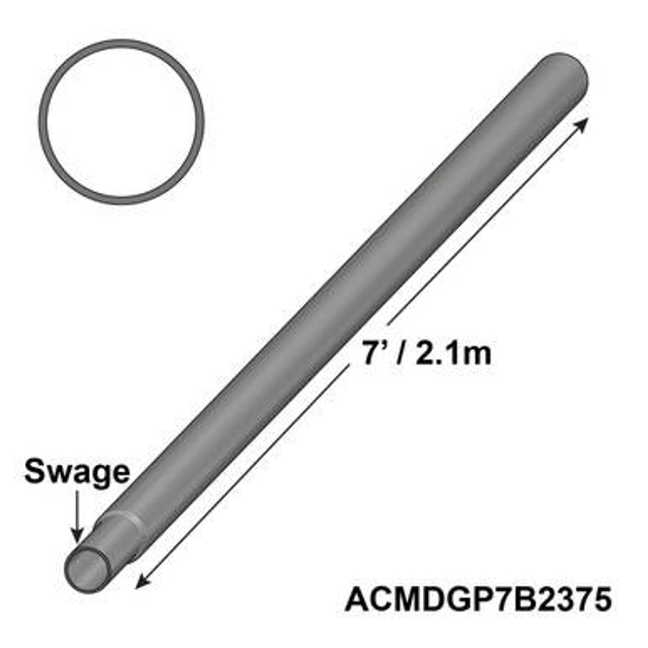 The 7' Medium Duty Bottom Pole is used at the base of the center pole. This Medium Duty Pole is compatible with Celina Tent's 2 3/8" O.D. Center Pole inserts and top poles. The swaged sectional poles fit conveniently into another eliminating the hassles of transporting and handling long one piece poles and helps reduce accidents and damages that may be incurred to your tent top during installation. The top piece of the 2 3/8" medium duty pole is 7' in length (7'10" with top pin) and fits conveniently together with the bottom medium duty pole piece (7') that includes a swaged end for a total center pole height of 14'. Depending on your tent size, inserts that include a swaged end may need to be inserted between the top and bottom center poles to reach the desired center pole height. Inserts allow the 7' top and bottom center pole pieces to be extended to fit various tent sizes without having to carry a large inventory of one piece poles of different lengths. Celina provides this type of pole to reduce installation times, costs, and effort for end users.
