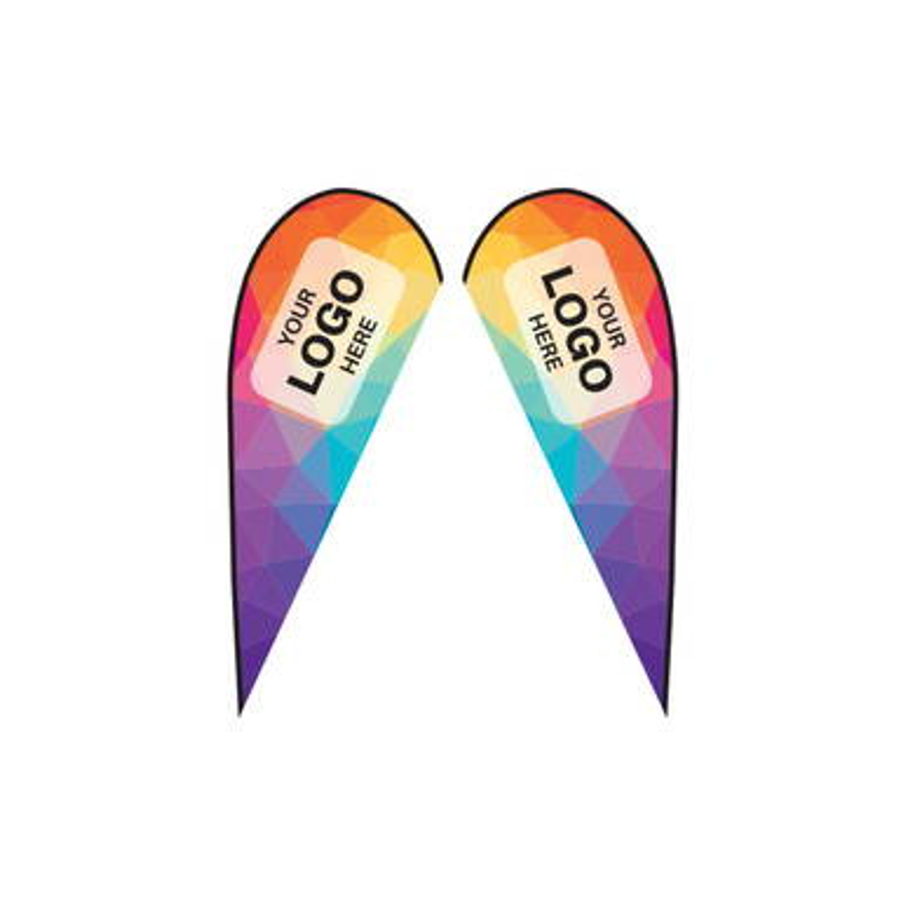 Our Double Sided Tear Drop Flags are perfect for any occasion! These sturdy single sided flags are constructed with grommets and a black 500 Denier polyester edge. Each is made using our top of the line direct disperse printing process, allowing the high d…