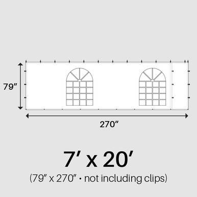 The 7 x 20 Cathedral Window Sidewall is intended for professional tent installations where appearance and weather protection must work together. Always overlap and buckle adjoining sidewalls to improve resistance to wind and rain. While compatible with most tent systems, verify attachment hardware before installation. Regular cleaning and inspection of window panels, tabs, and buckles helps maintain clarity, performance, and appearance across repeated setups and teardowns.