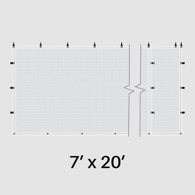 - Included: One 7 x 20 white mesh sidewall with snap hooks, grommets, and buckles