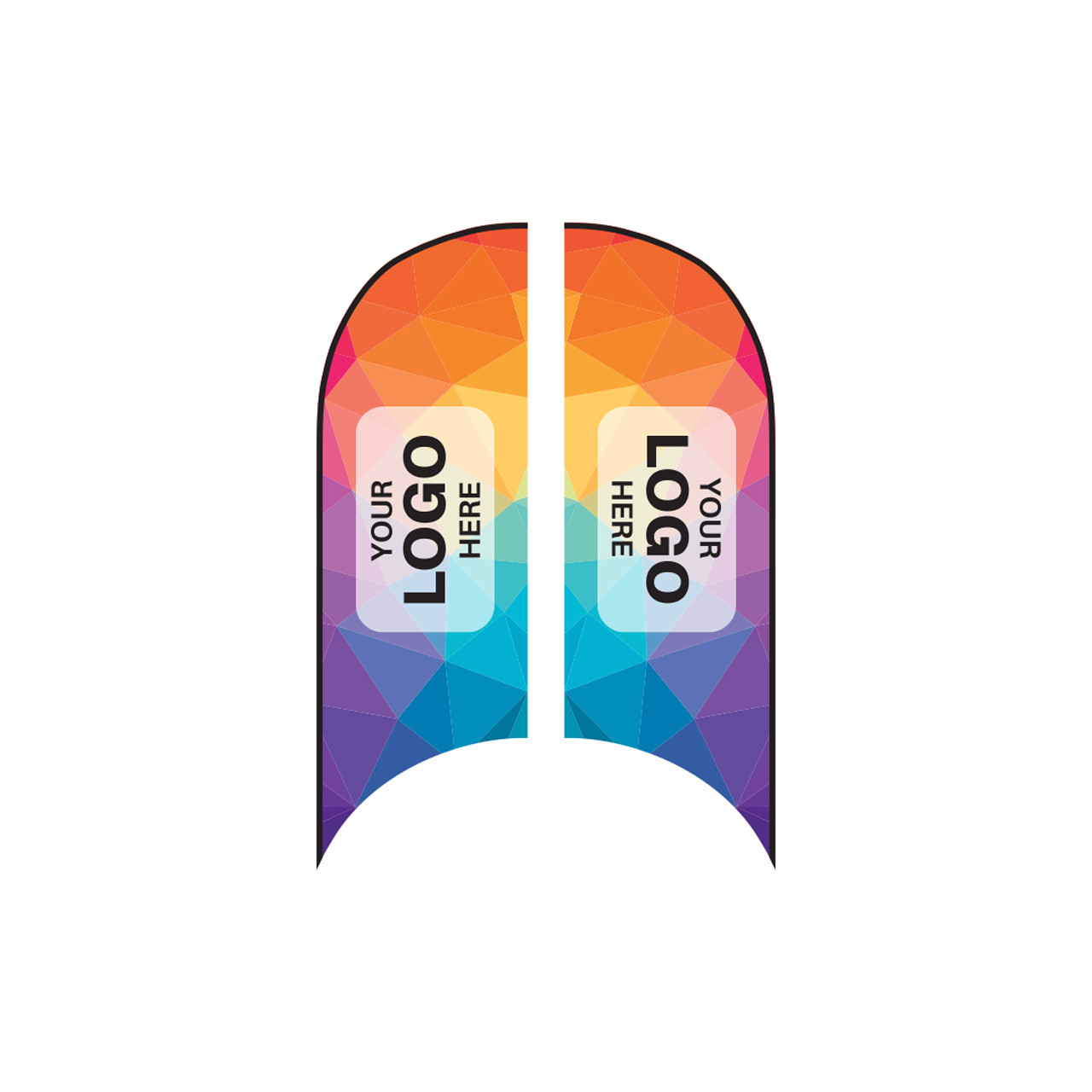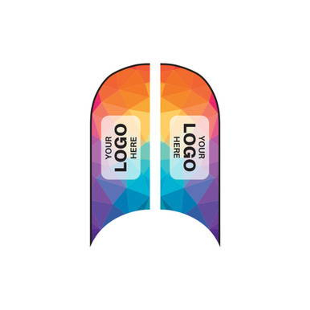 Our Double Sided Blade Flags are perfect for any occasion! These sturdy single sided flags are constructed with grommets and a black 500 Denier polyester edge. Each is made using our top of the line direct disperse printing process, allowing the high definition graphic to be sublimated with full penetration of color with no color limitations. Double sided printing is achieved by sewing block-out fabric between the two layers of printed polyester. Great for trade shows, conventions, point of purchase (POP), exhibitions, conferences, promotion events, shopping centers, retailers, and much more! Specifics include: