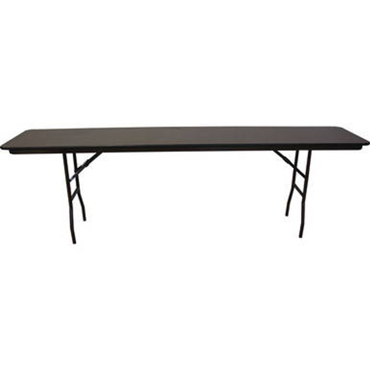 8' (2.44 m) Laminate Training Tables make for great additions to your table repertoire. Each table has durable steel legs for stability, with foot caps to protect both the leg end and flooring. Metal skirting on the underside of the table keeps the table top, created from particle board and heavy-duty melamine resin, from bending. The legs for flat against the table for easy transportation and storage.