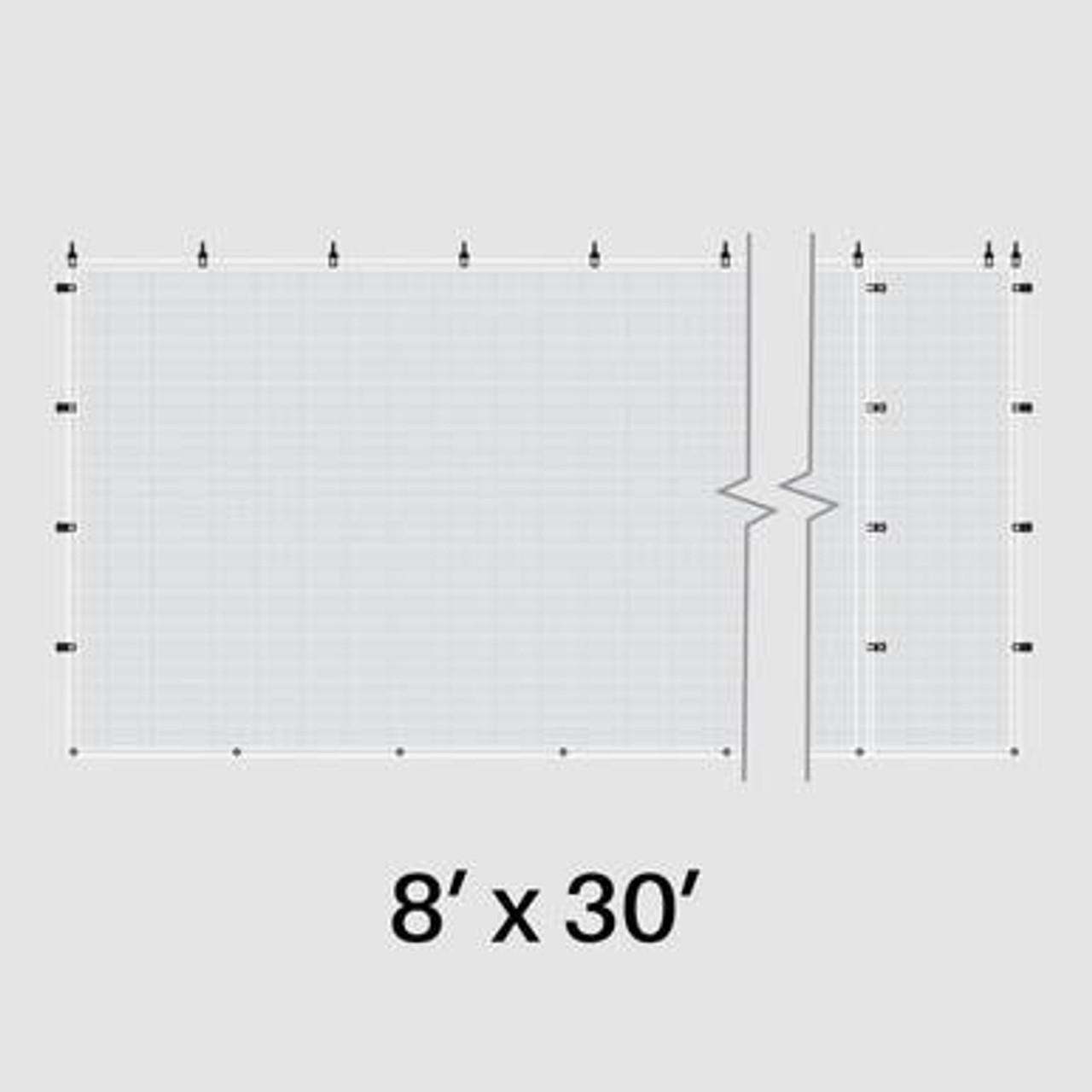 Mesh Screen Sidewalls. Coated with PVC, the open-scrim construction of our mesh screen sidewalls can enhance your tent experience whether you need more air flow or to limit insect trouble. Mesh used for sidewalls is available in white and black, or can be wide format digitally printed with your brand, logo, or graphic. As with other sidewalls, mesh sidewalls come with snap hooks to attach to the rope line on the tent, and grommets along the bottom edge for use in staking or pinning to add stability. Mesh screen walls overlap the adjoining wall and connect with side release buckles to reduce wind & rain intrusion.