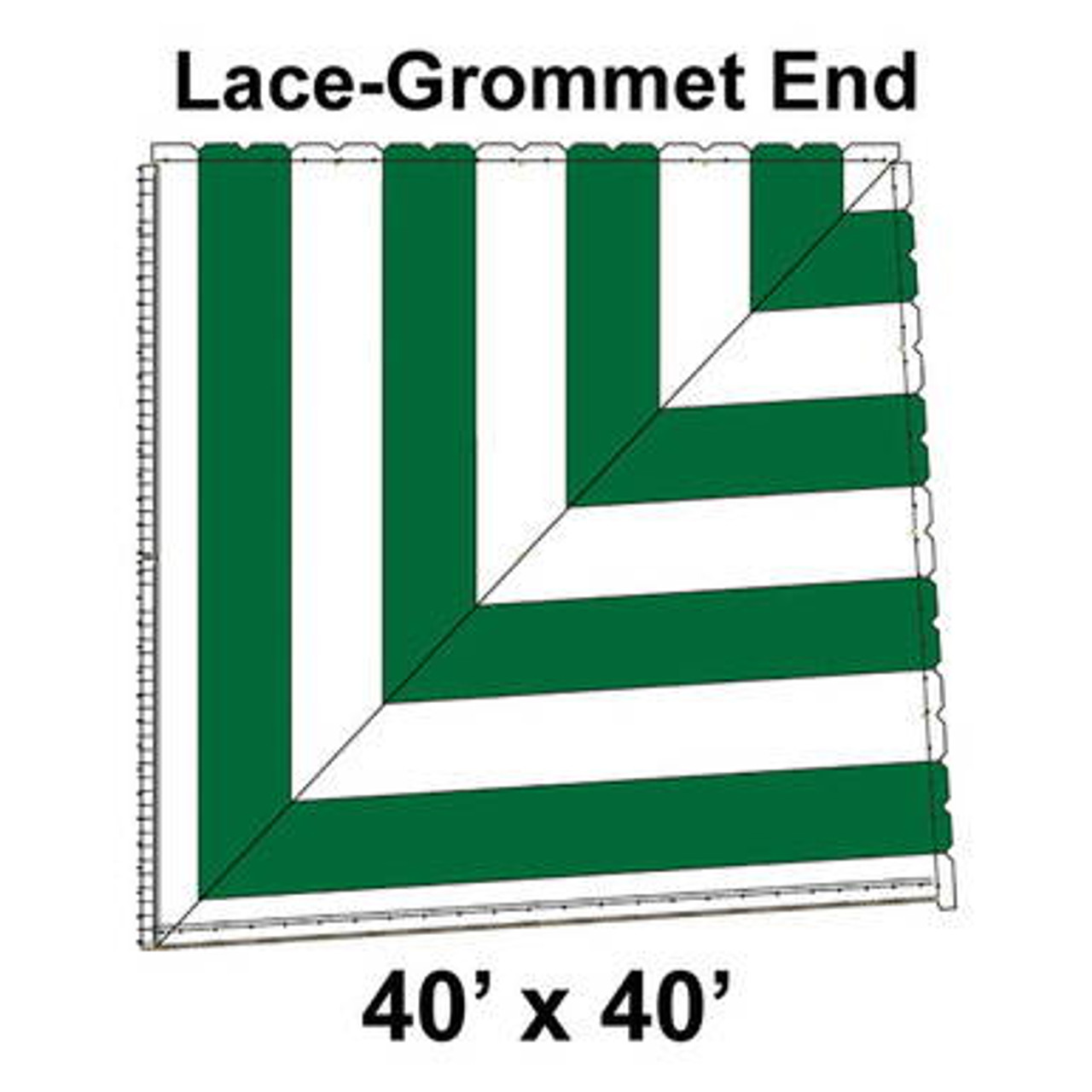80' Classic Pole Tent End Section 2 of 4, 16 oz. Ratchet Top, White and Forest Green (40'x40'-Lace Grommet)