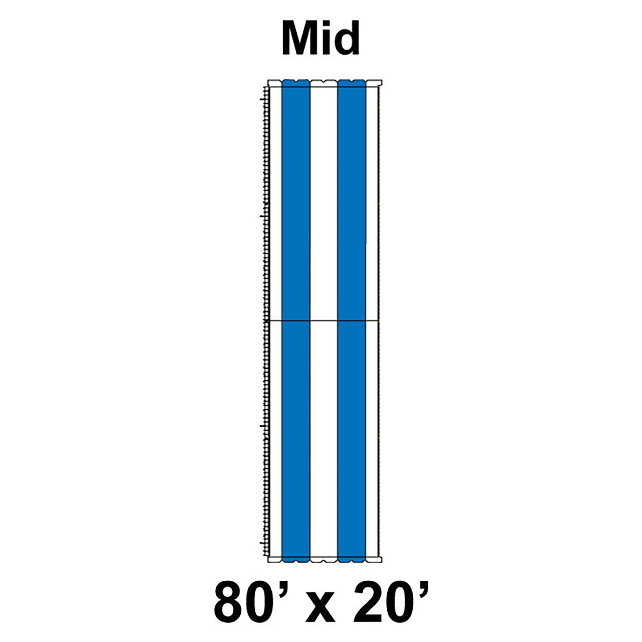 80' x 20' Classic Pole Tent Mid, 16 oz. Ratchet Top, White and Blue