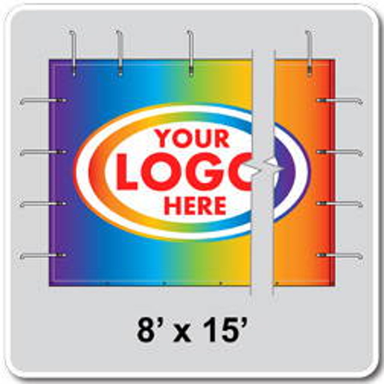 Our 8' x 15' Cross Cable Single Sided Printed Backdrop allows you to customize your Pinnacle Series High Peak Frame Tent by providing an eye-catching background for you tent's interior. When created, the outside portion of the backdrop will possess the clip lip and clips used to attach the backdrop to the tent frame. Clips run along the sides and top of the backdrop. As Pinnacle Backdrops are unique to the Pinnacle Series Tent, they can't be used with other systems, and other styles of backdrops likewise can't be used on Pinnacle Series Tents.
