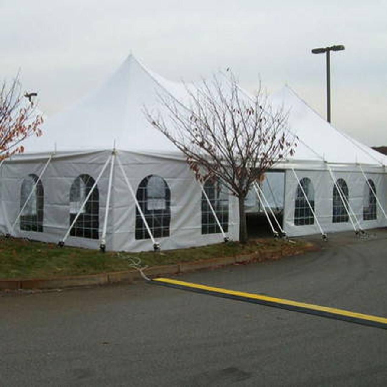 Cathedral Window Sidewalls add stylish visibility to all tent-related events. Made from double-polish clear PVC vinyl with non-scratch window lines layer in between, cathedral windows are attached to sidewalls made from 16 oz. block out vinyl for durability. Cathedral window sidewalls can be used in conjunction with other sidewalls to form unique tent appearances. Tabs that secure the spring clips to attach the sidewalls to the tent are color-coded for easy length identification. Window sidewalls overlap the adjoining wall and connect with side release buckles to reduce wind & rain intrusion.