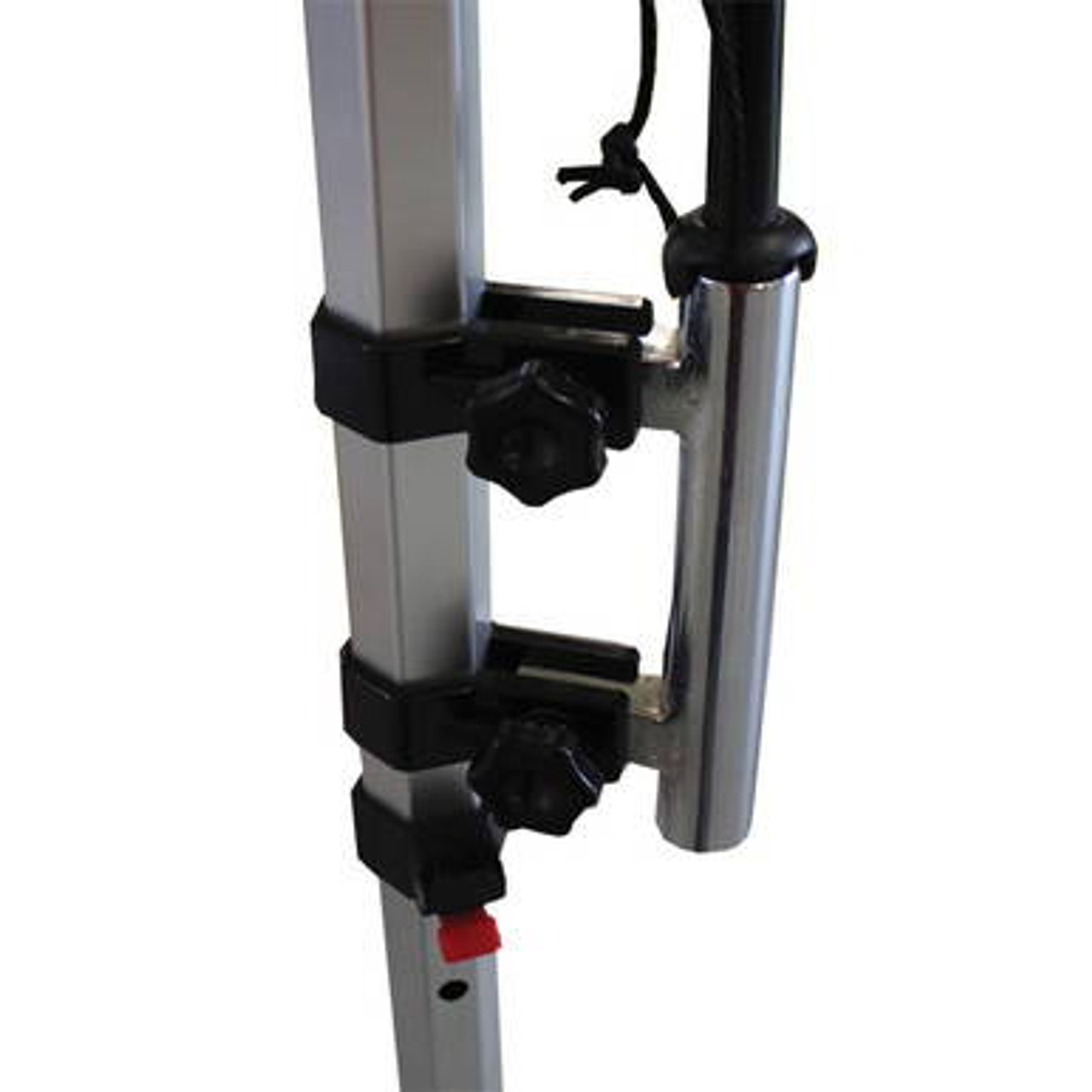 Designed to attach to Fast Shade Pop Up Tents, the Aluminum Fast Shade Flag Holder allows you to add eye-catching flags to your aluminum Fast Shade frame. All styles of flags will fit into the metal base, which wraps around the aluminum leg and secures with screw bolts.