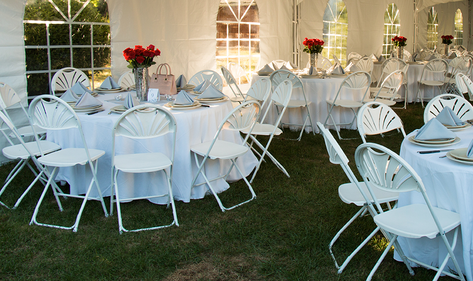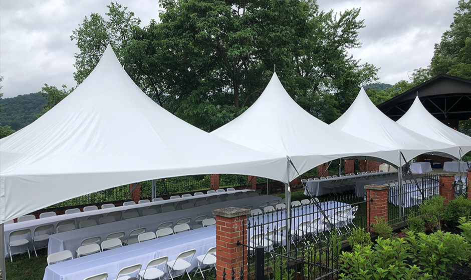 If people are gathering outdoors, a custom canopy tent helps define the space and make it memorable.