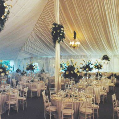 The 21' Center Pole Drape is made of 100% polyester, flame-resistant fabric, and are intended for use with center poles of the same size. Center Pole Drapes provide decoration to conceal the metal center poles used in all styles of pole tents. These drapes are compatible with Celina's Classic Series Pole Tent, and both the Premiere I and Premiere II Series High Peak Pole Tents.